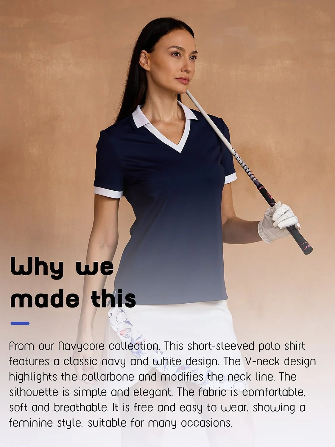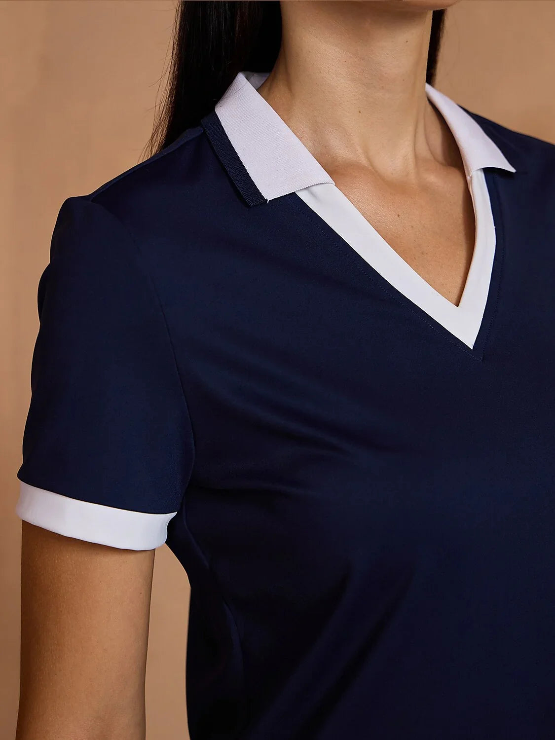 Navycore Short Sleeve V-Neck Stripe Polo UPF50+